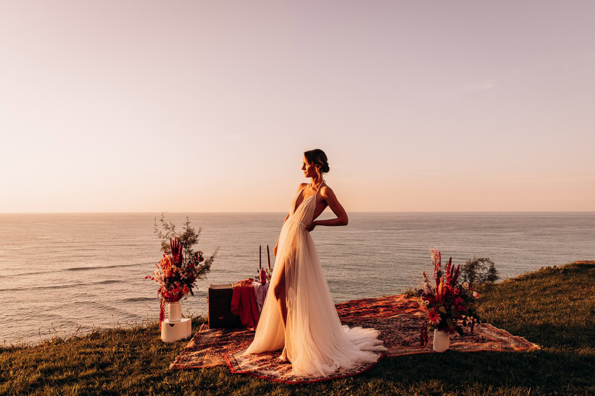 Inspiration mariage à Biarritz, un style bohemian chic avec les creations pour les mariées par Galatee Couture. A shooting by the sea near Biarritz.