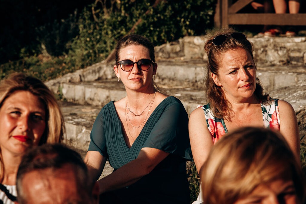 Votre mariage se déroule en plein été et une canicule est annoncée ? Privilégiez un lieu ombragé pour éviter que vos invités fassent un malaise en cas de forte chaleur. Il n’y a rien de plus beau que de créer une atmosphère à l’ombre d’un chêne centenaire. Pourquoi ne pas suspendre des voilages blancs sur plusieurs mètres depuis 2 ou 3 grandes branches … Lorsque vous n’avez pas le choix d’être en plein soleil, essayez de vous positionner dos au soleil. Vous voulez que votre photographe et vidéaste saisissent toutes vos belles émotions ? Alors ce serait dommage d’avoir des mariés avec des lunettes de soleil ou plissant les yeux pendant toute la cérémonie. Surement ce sera le cas de vos invités mais c’est moins grave 🙂