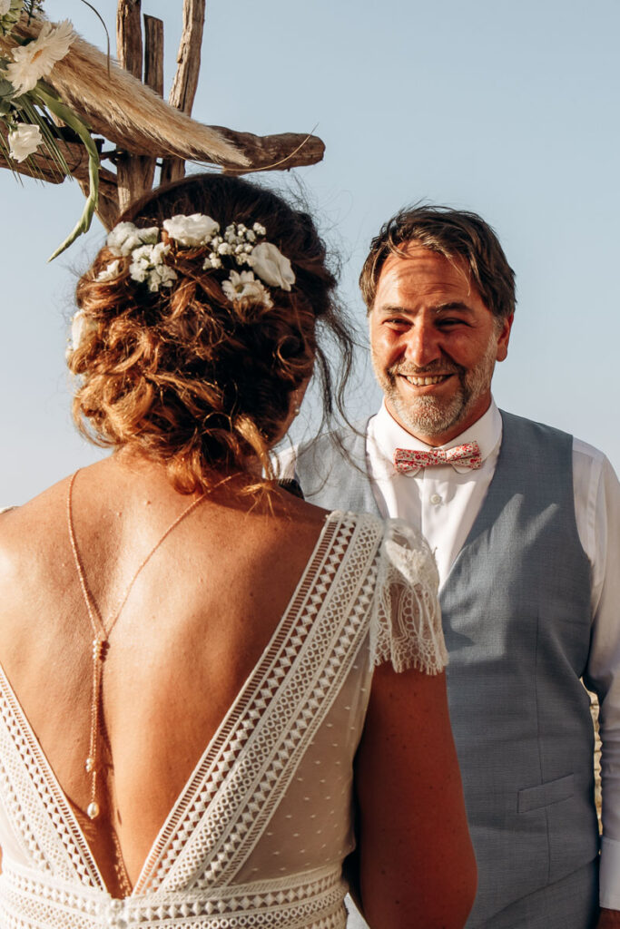 Après que vos proches aient fait leur discours, place au moment où vous allez échanger vos voeux. Dans la majorité des mariages, c’est généralement vers la fin de la cérémonie laïque que les époux se lèvent pour lire leurs promesses de mariage. Vous pouvez vous placer debout l’un face à l’autre devant l’arche que vous avez choisi avec votre fleuriste. Ainsi tous les invités vous verront bien. C’est votre moment, vivez le à 100% et ne gardez pas vos émotions.