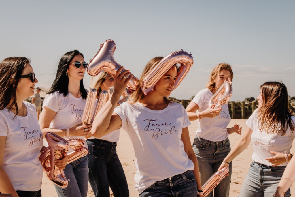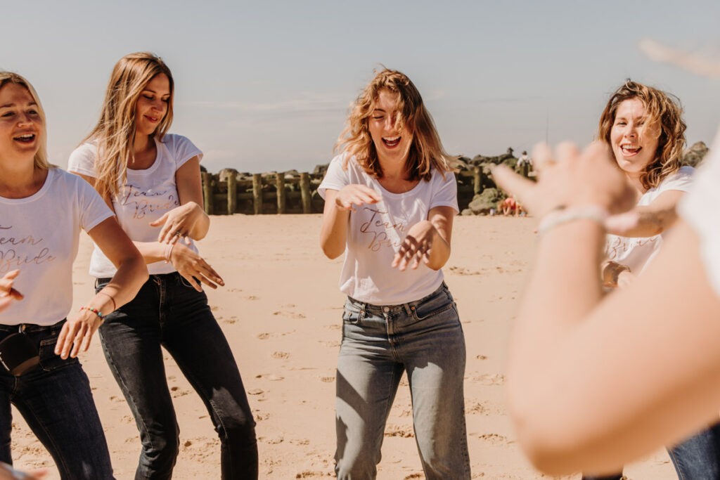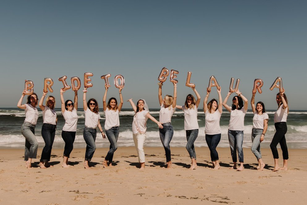 Les filles avaient prévu également des lettres pour former le message : BRIDE TO BE LAURA. L’occasion de faire des photos de groupe sympa ! Et surtout elles avaient amené une enceinte blouetooth pour pouvoir danser sur la plage. Cela permet de détendre l’ambiance car certaines d’entre vous sont parfois plus timides … Dès lors, le groupe de copines a dansé comme jamais et c’était vraiment top !