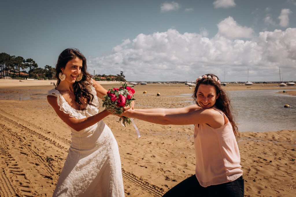 J’ai retrouvé Emeline et ses amies sur la plage à coté du phare du Cap Ferret. Ses amies étaient allé lui acheter un joli bouquet de fleurs au marché. Et elles étaient toutes magnifiques. Emeline avait une très joli robe blanche et des passants ont même cru qu’elle venait de se marier 😉 Merci à vous toutes pour cette belle matinée, je suis heureuse que vous ayez passé un super week-end sur le bassin d’Arcachon.