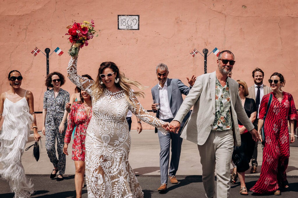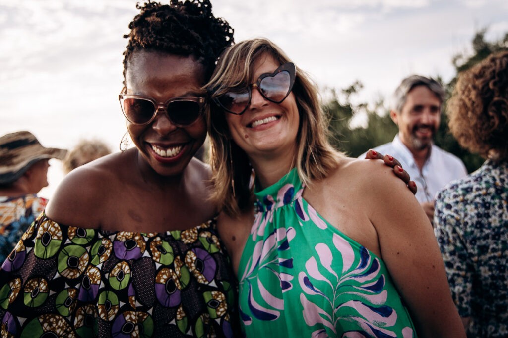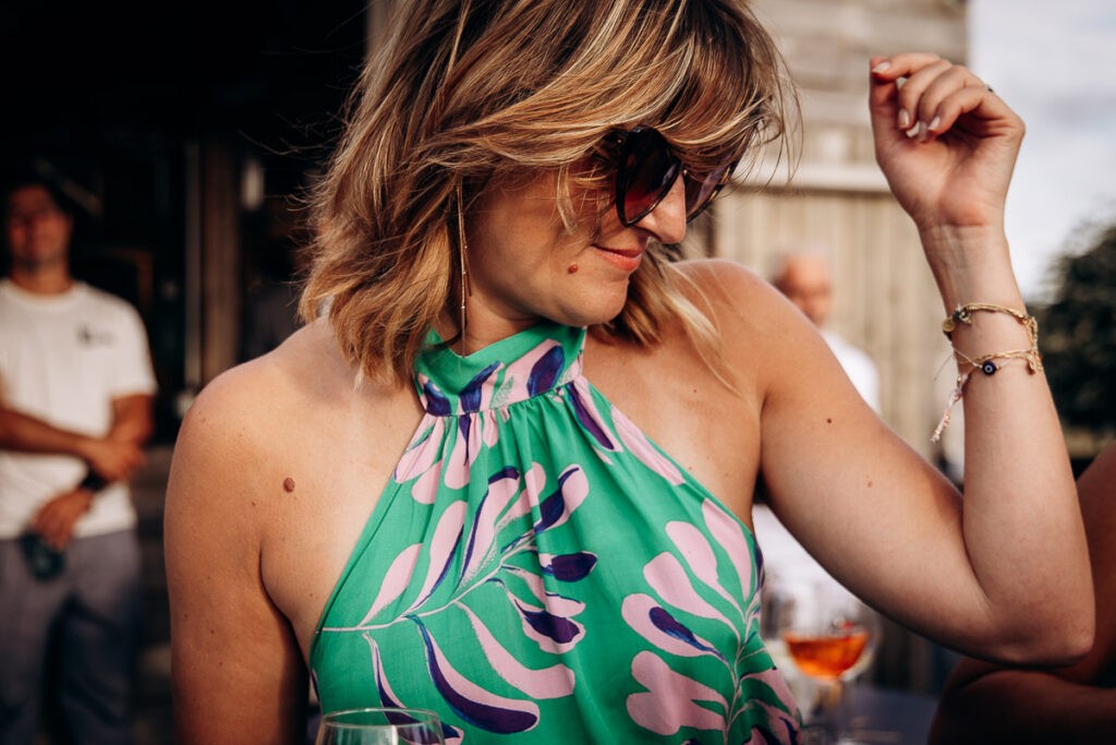 Après l’échange des voeux, place à la réception ! Une ambiance de folie c’était fantastique. Que de good vibes pour ce mariage de rêve !! La déco sublime, la vue parfaite, des spritz bien frais et la musique d’ambiance. Tout était réuni pour que les invités profitent à fond du moment présent et ils n’ont pas tardé à danser sur la terrasse.