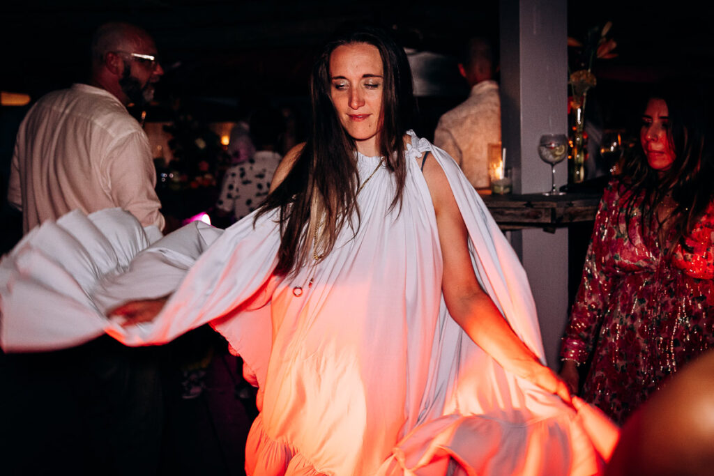 Après un cocktail animé, place au diner ! Les mariés souhaitaient passer un minimum de temps à table et ce fut respecté par l’organisation et l’équipe de la voile rouge. Quel merveilleuse idée ! Vraiment il n’y a rien de pire que d’avoir un diner de mariage qui dure plus de 2h30 … Et c’est hélas souvent le cas, entre les différents plats et les animations, discours ou autres surprises de vos amis. Clemence et Jimmy souhaitaient offrir un moment suspendu à leurs amis. Pendant la golden hour, ils ont demandé à leurs invités de se diriger vers la plage pour vivre ensemble ce merveilleux moment. Puis tout ce beau monde s’est dirigé vers la coupole pour danser jusqu’au bout de la nuit.