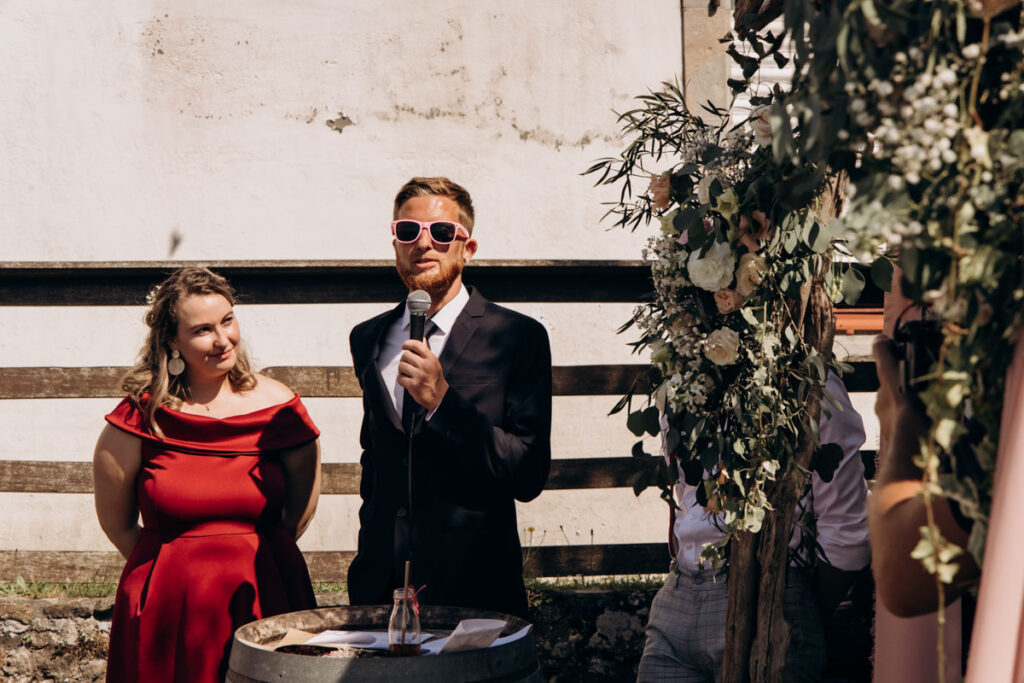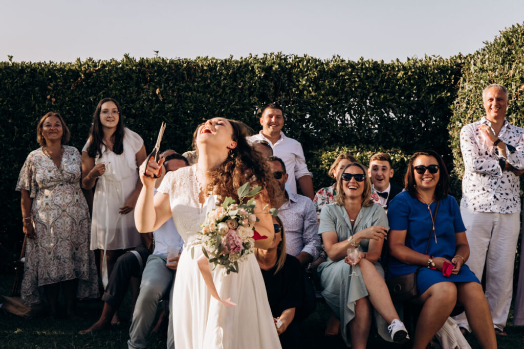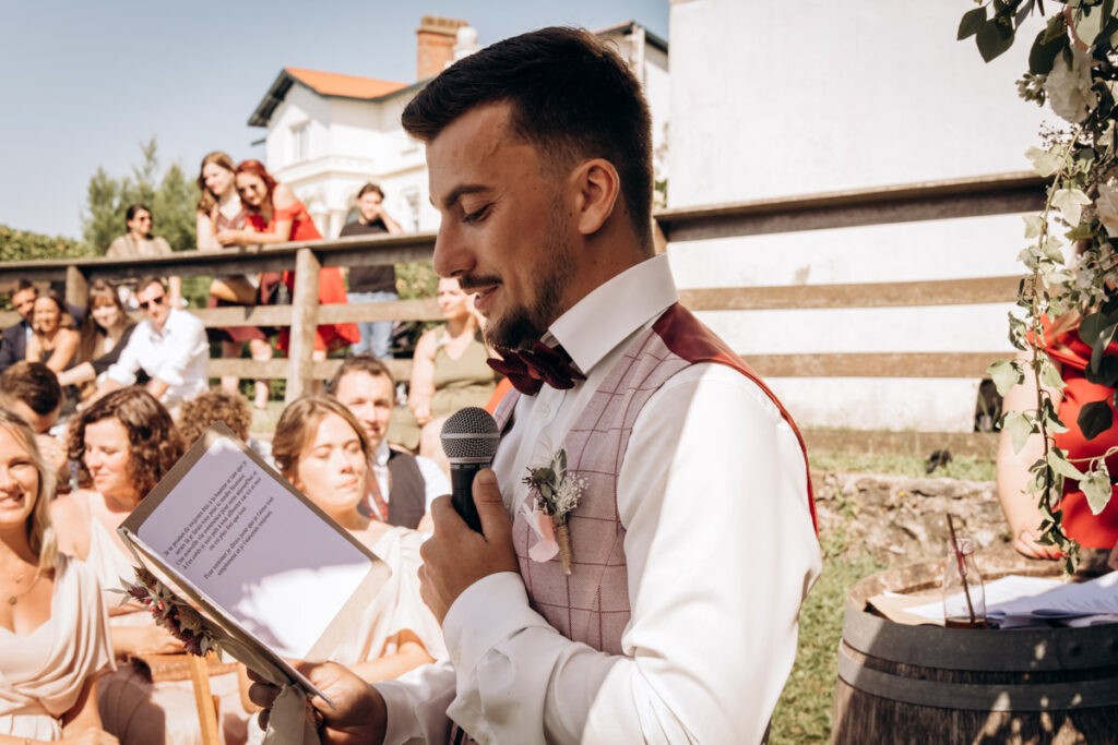 Après leur cérémonie civile, direction Bidart pour tous les invités. En effet, Léa et Maxime avaient souhaité garder secret leur lieu de réception. La découverte fut merveilleuse pour tous leurs proches ! Leur mariage s’est déroulé sous un grand soleil au mois de juillet. Place à la cérémonie laïque avec des discours et un échange de voeux émouvants. Puis la réception jusque tard dans la nuit …
