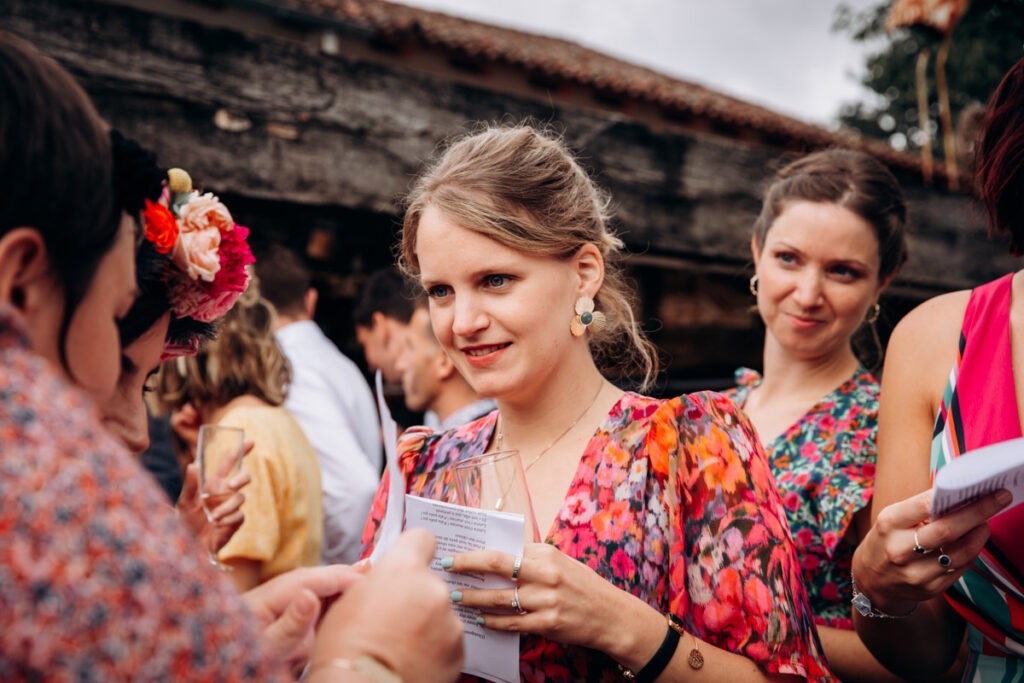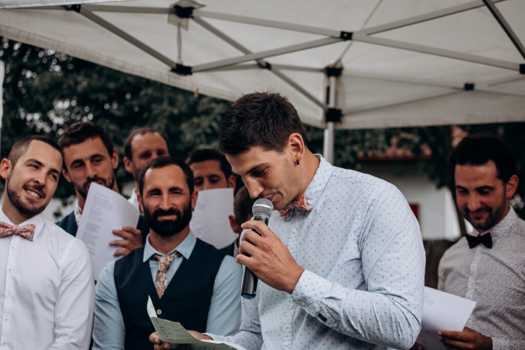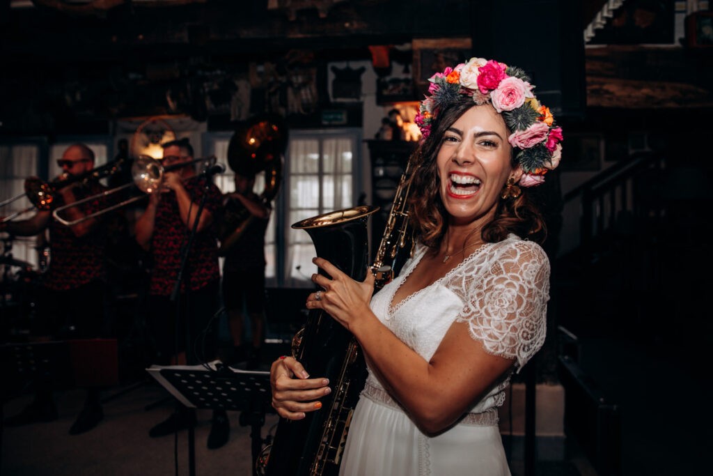 Les cérémonies ayant eu lieu le matin, c’est donc une réception en journée que vous allez découvrir. Vers 14h les invités ont rejoint le lieu de réception à St Pee sur Nivelle. Et le cocktail a été animé par le Kiwi’Zz band qui a mis le feu également pendant la réception. C’était joyeux et festif, à l’image de Laura et Mathieu. Quelques surprises ont été organisées par les témoins. Puis les invités ont été invités à passer à table et les mariés les ont rejoint. La fête a continué jusqu’au bout de la nuit et les mariés avaient même prévu un food truck en cas de fringale 😉