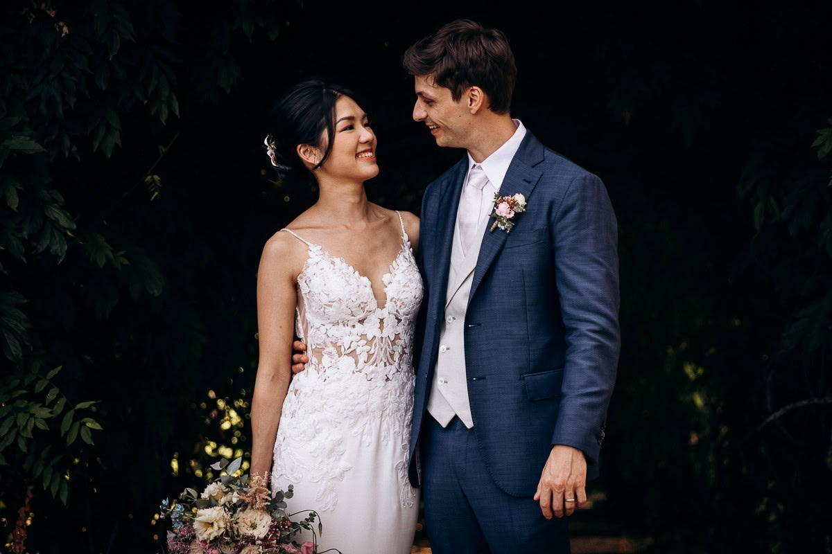 Notre mariée avait prévu 3 tenues pour son mariage. Une sublime robe au style intemporel et moderne signée Enzoani pour la cérémonie et le cocktail. Pour le diner, Michelle a revêtu une magnifique robe robe d’inspiration chinoise. En effet, le Cheongsam est une robe traditionnelle chinoise, caractérisée par un col droit, une ouverture côté droit. La créatrice Meichi Phoon en a créé une version moderne qui a ébloui tous les convives lors de l’entrée des mariés dans la salle de réception.