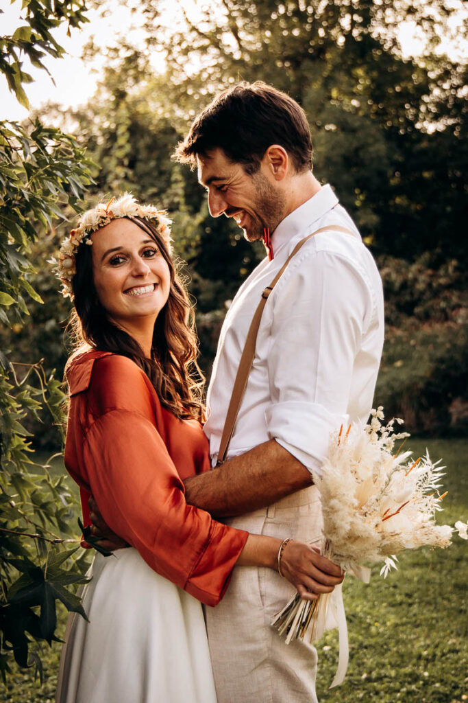 Vous avez découvert ce beau couple lors de leur seance engagement à Socoa. Découverte aujourd’hui de la première partie, leur mariage civil à Larressore. Suivie d’un cocktail dans le magnifique jardin familial. Une arrivée surprise en tandem qui a ébloui leurs proches. Une cérémonie civile émouvante car la mairesse de la ville connait très bien nos mariés. Puis une réception avec une décoration soignée et élégante. Le terracota est associé avec des éléments naturels : des herbes de pampa, du rotin, une grande table en bois et des bottes de foin …