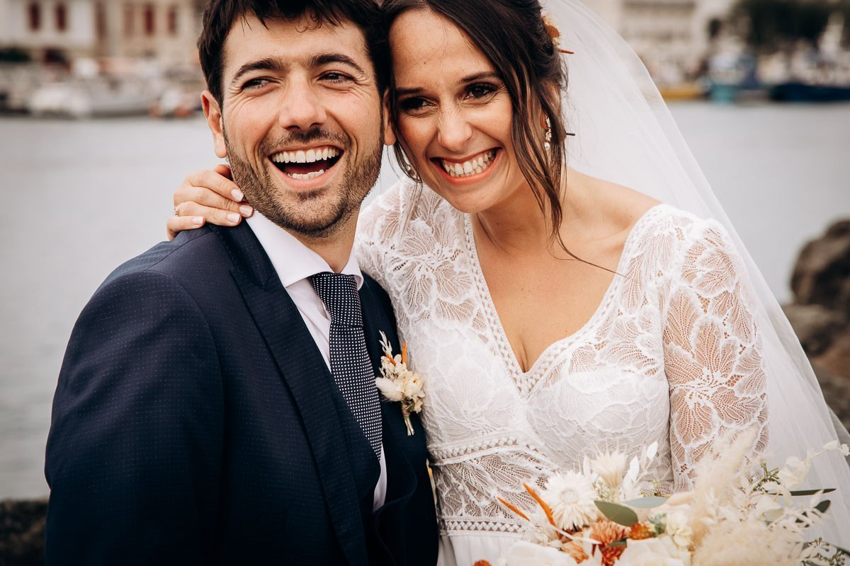 Leur mariage s’est déroulé sur 2 jours. Après leur mariage civil le vendredi suivie d’un cocktail en petit comité, place à la grande fête avec la cérémonie religieuse dans l’église de Ciboure. Après des préparatifs dans 2 lieux séparés, les mariés se sont retrouvés à l’église de Ciboure. Une très belle célébration suivie de la traditionnelle photo de groupe générale. Puis nous nous sommes éclipsés pour leur photo de couple dans les ruelles de Ciboure puis vers le port. Ensuite direction Urrugne pour retrouver leurs proches, une arrivée remarquée avec des fumigènes 🙂