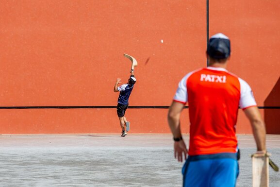 Prise de vue des frères Tambourindeguy qui donnent au fronton de Bidart des cours de pelote. Reportage dans le cadre de la creation d’un nouveau magazine de l’office du tourisme de Bidart.