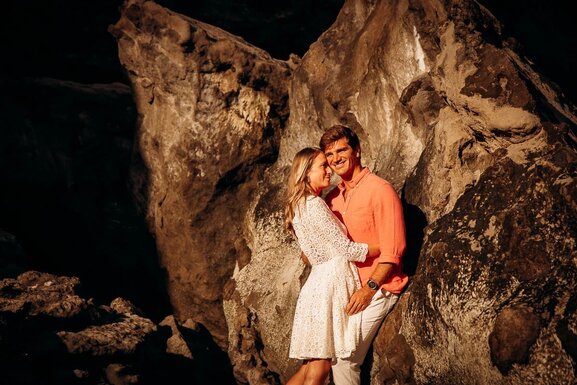 Par une douce matinée d’été à proximité du VVF à Anglet et du phare de Biarritz, j’ai retrouvé ces amoureux. C’était notre première vraie rencontre car nous avions seulement échangé à distance. Cela n’a pas empêché de créer une belle collaboration et se rencontrer pour cette séance permet de renforcer la confiance entre nous 3. Une seance couple les pieds nu sur le sable et dans l’eau.