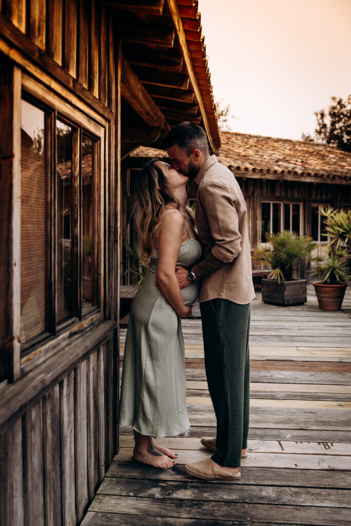 Une matinée parfaite et une lumière douce pour cette seance grossesse dans une cabane au Cap Ferret.