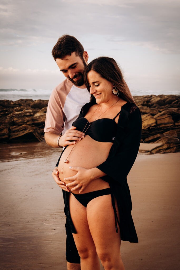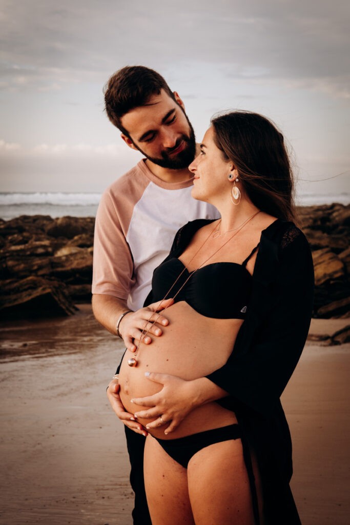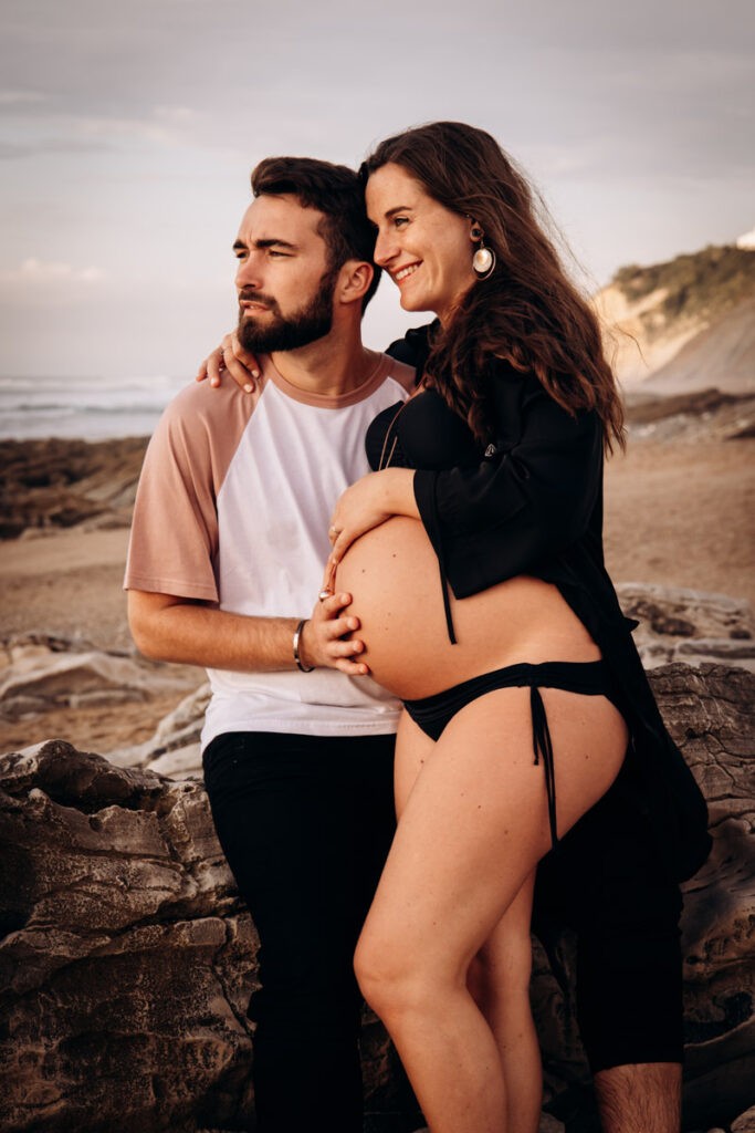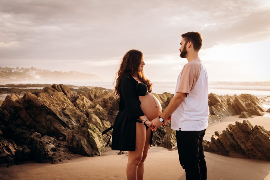 En effet, c’est Marion la meilleure amie de Sam qui m’a contacté d’Australie. Celle-ci voulait offrir un bon cadeau pour une séance grossesse et bébé à leurs amis. Touchée par ce geste généreux, j’avais hate de les rencontrer. Nous nous sommes retrouvés en fin de journée en septembre. Pour leur séance grossesse en extérieur, direction une plage de Bidart.